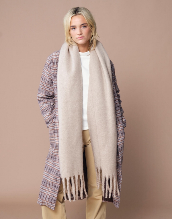 Luksuslikult pehme kangas ja oversized disain, millel on kahes otsas tuttidega ääris.